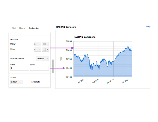 Charts now support specifying minor gridlines and customizing axis formatting.